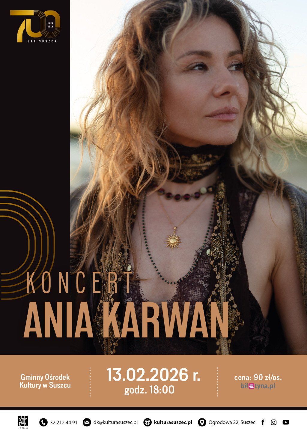 Koncert odbędzie się 13 lutego 2026 r. o godz. 18:00 w Gminny Ośrodku Kultury w Suszcu. Bilety w cenie 90 zł można zakupić w sekretariacie oraz na portalu biletyna.pl.