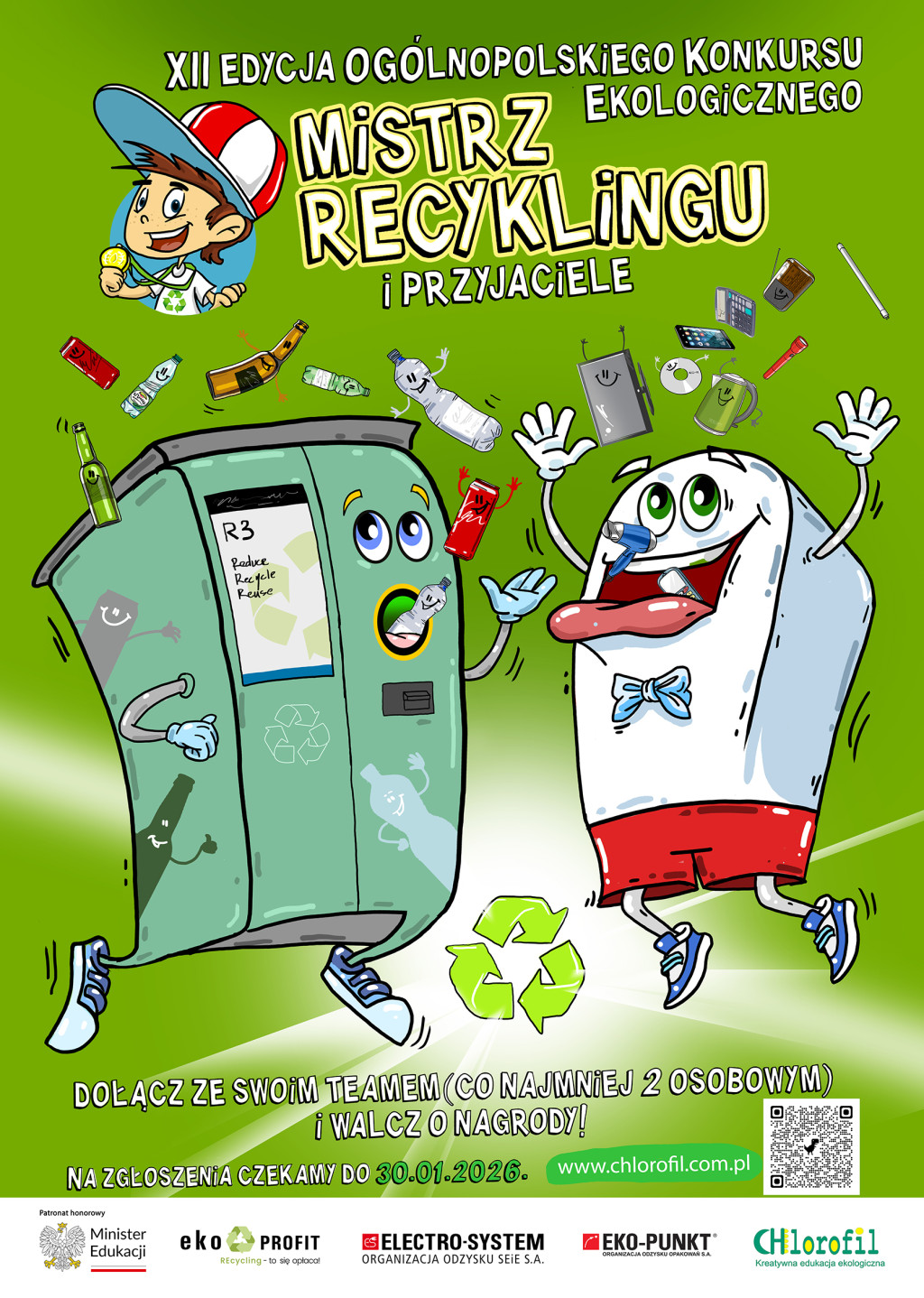 Więcej szczegółów na temat konkursu „Mistrz Recyklingu i Przyjaciele” na stronie www.chlorofil.com.pl, kontakt do organizatora konkursu: Agnieszka Oleszkiewicz tel. 608 633 593