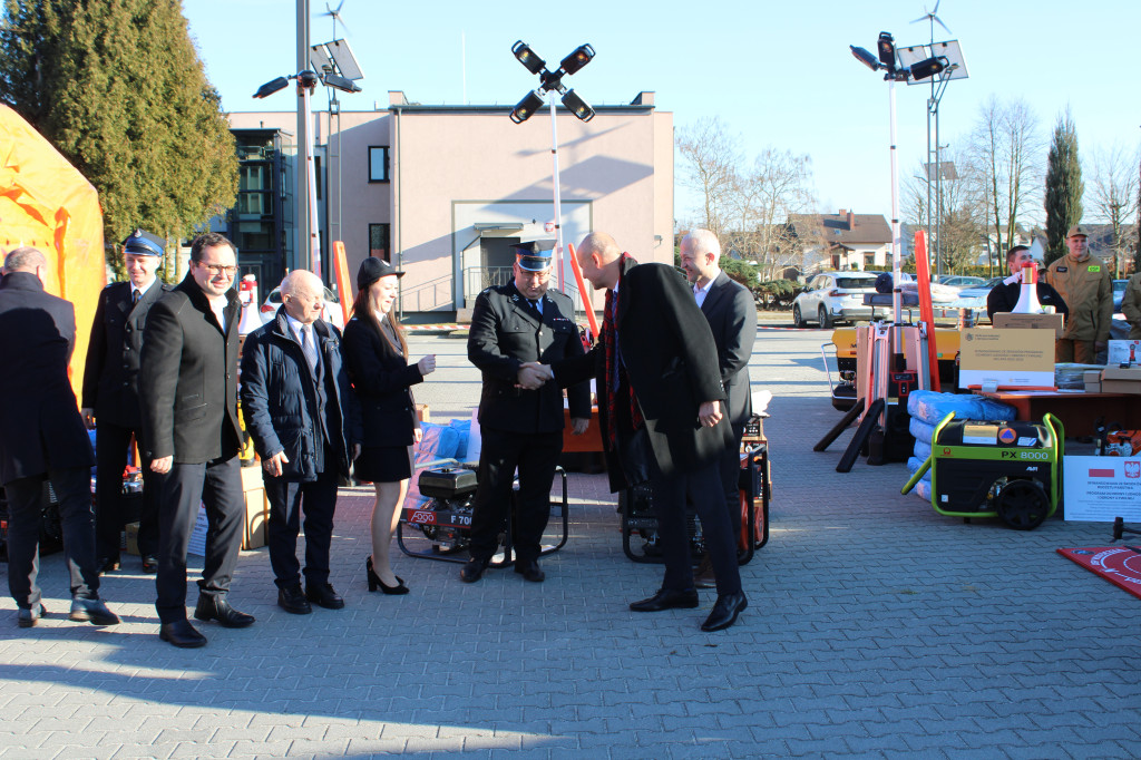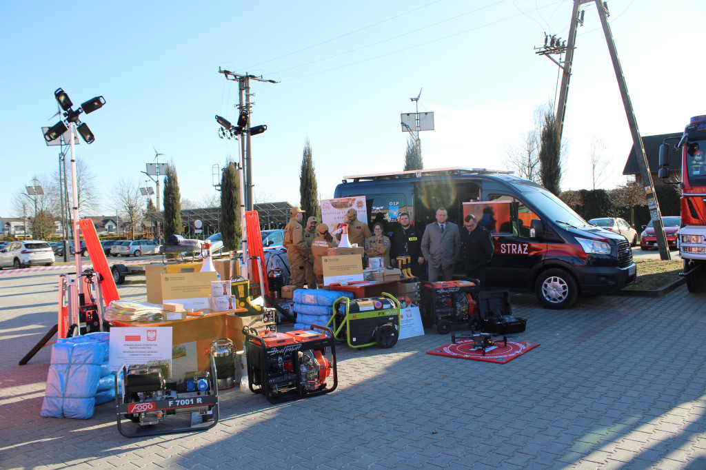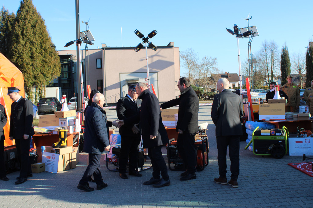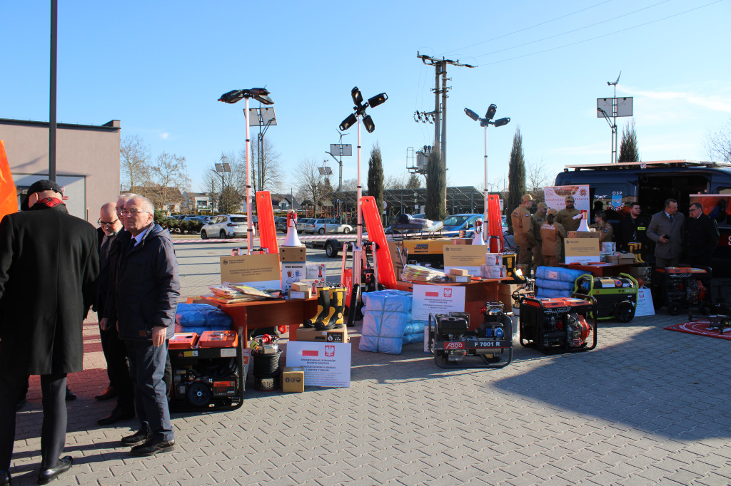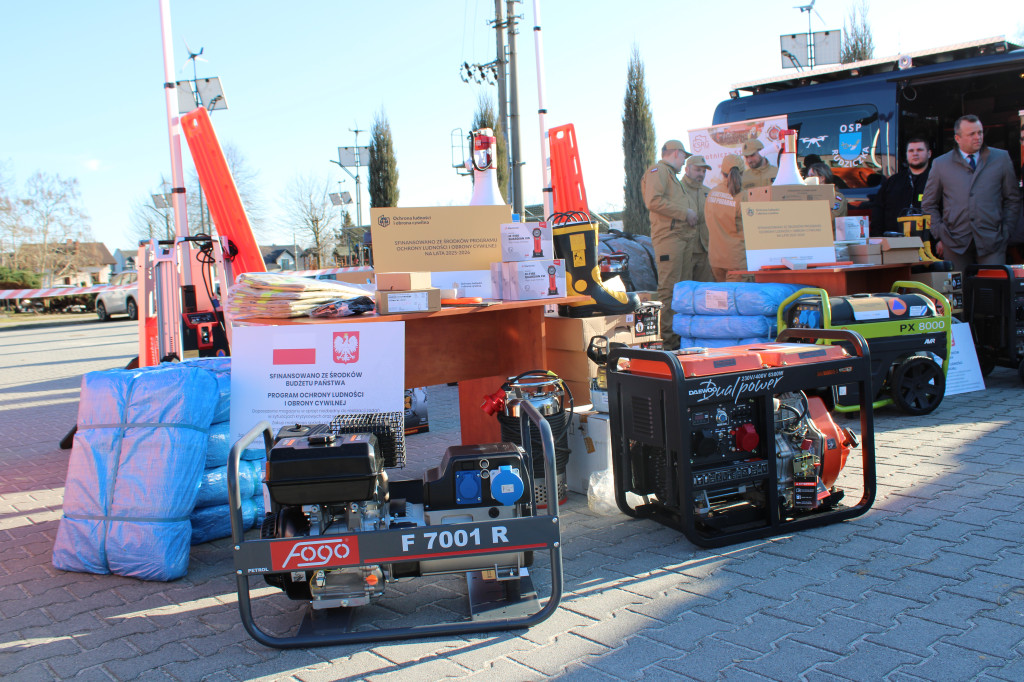 - sprzęt niezbędny do realizacji zadań w sytuacjach kryzysowych oraz w czasie wojny (agregaty prądotwórcze, plandeki, przedłużacze, zbiorniki na wodę, na paliwo, megafony, radiotelefony, pompy do wody zanieczyszczonej, osuszacze powietrza, latarki, pilarki do drewna, łopaty, taczki),