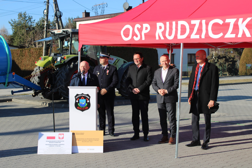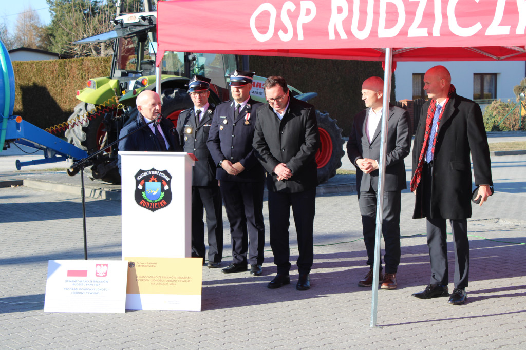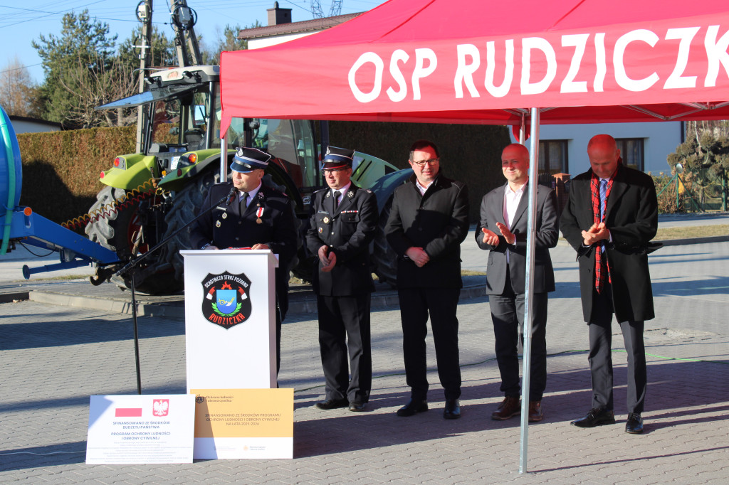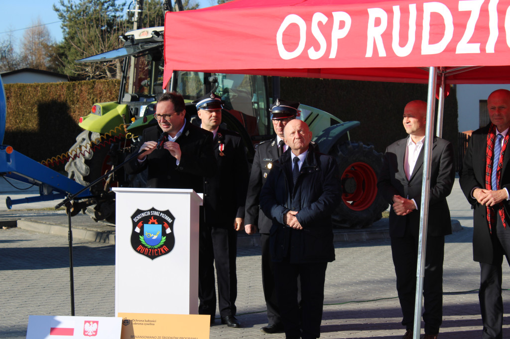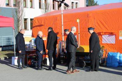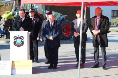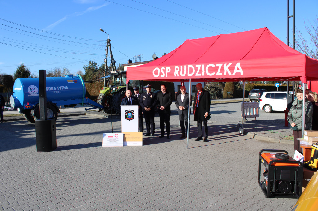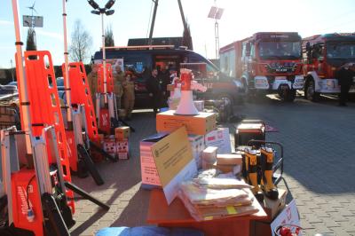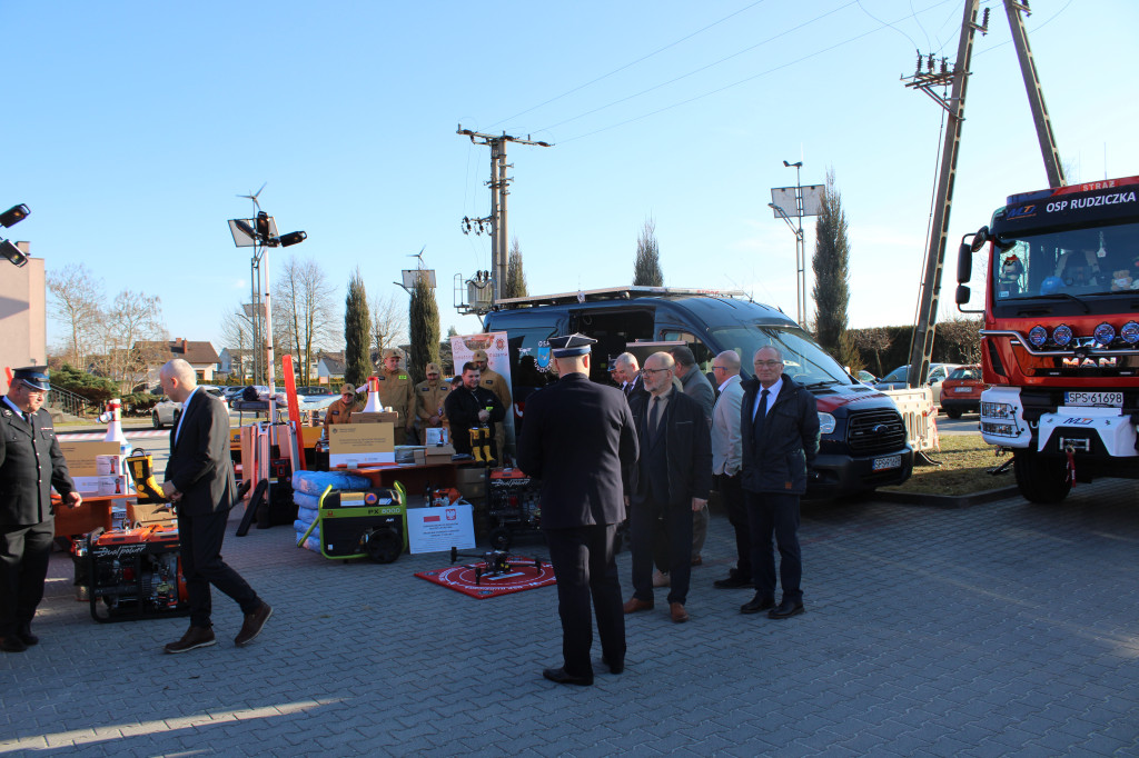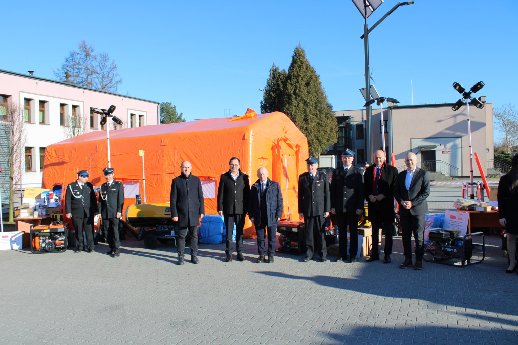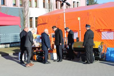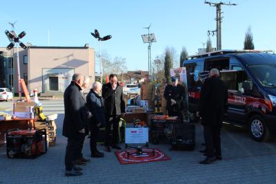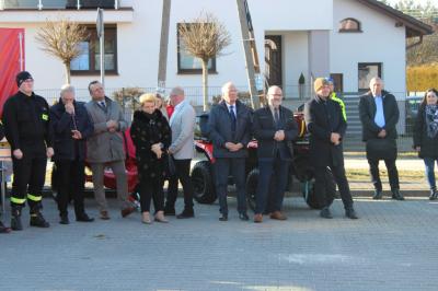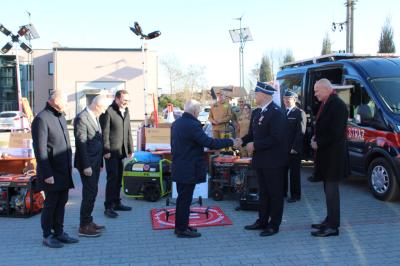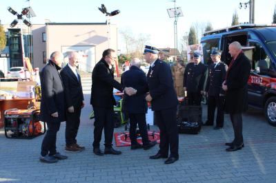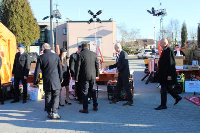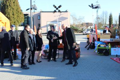 Oficjalne przekazanie zakupionego sprżetu i wyposażenia odbyło się 26 lutego w Urzędzie Gminy Suszec. Wzięli w nim udział Wicewojewoda Śląski Michał Kopański, Wójt Gminy Marian Pawlas, Zastępca Wójta Gminy Krzysztof Spyra, Sekretarz Gminy Roman Szopa, Przewodniczący Rady Gminy i Prezes Zarządu Oddziału Powiatowego Związku OSP RP w Pszczynie Szymon Sekta, Prezesi i Naczelnicy OSP oraz strażacy jednostek, Prezes Zarządu Oddziału Gminnego Związku OSP RP w Suszcu Janusz Beer, Komendant Gminny Związku OSP RP w Suszcu Jacek Szymanowski, Prezes PGK Sp. z o.o. Mieczysław Malcharek, radni i sołtysi, inspektor ds. obrony cywilnej, zarządzania kryzysowego i obronności Elżbieta Mikołajec, pracownik ds. obrony cywilnej, zarządzania kryzysowego i obronności Patrycja Bandura oraz inspektor ds. obsługi podmiotów gospodarczych Grażyna Prządka.