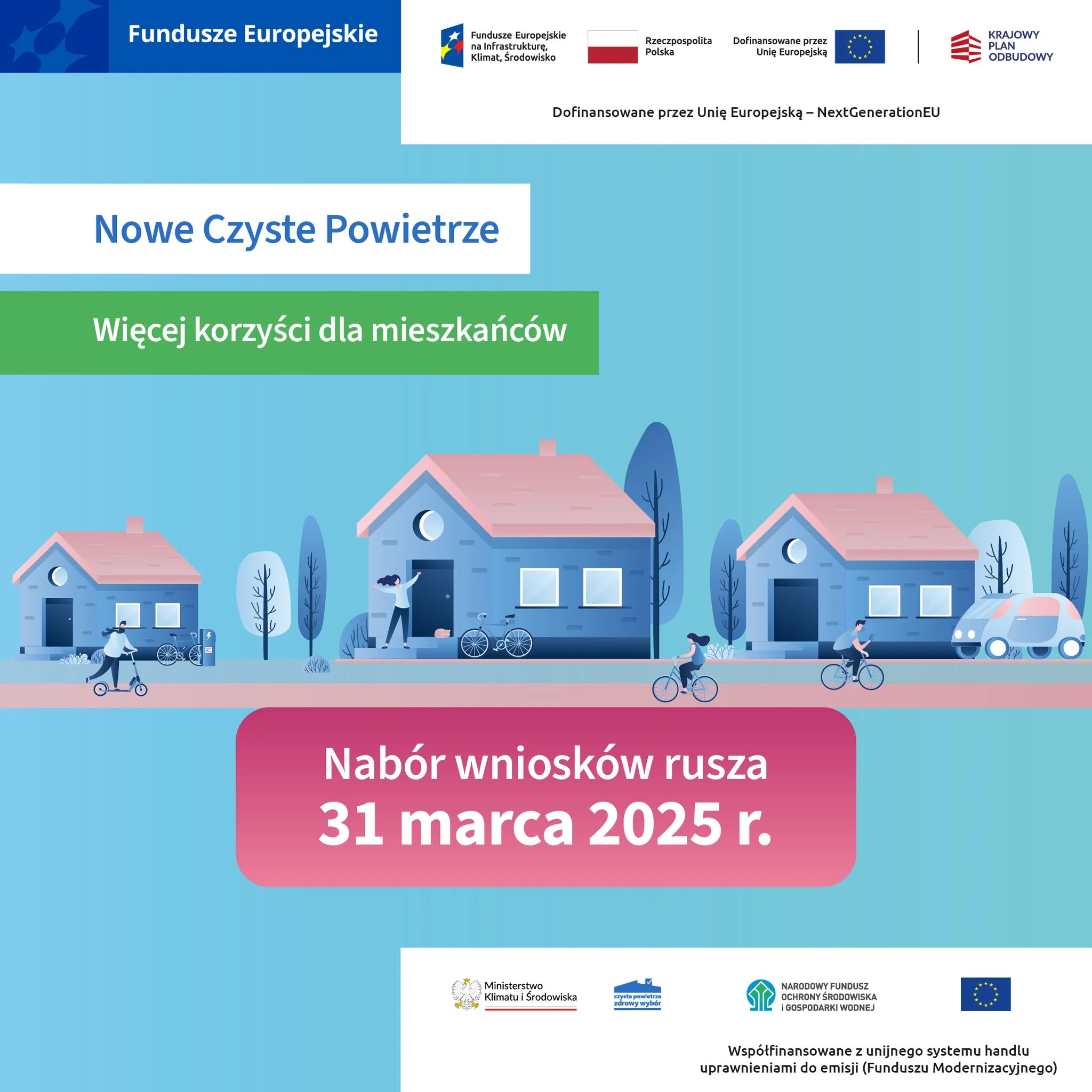 W dniu 31.03.2025 r. rozpoczyna się nabór wniosków o dofinansowanie, który będzie prowadzony w ramach programu priorytetowego „Czyste Powietrze” zgodnie z: